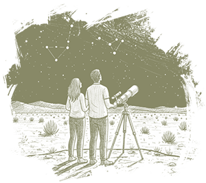 no light pollution, breathtaking Milky Way views, constellations, and planets.